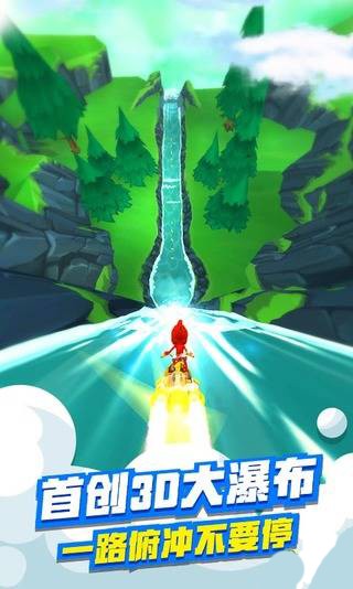 4、首创大瀑布3D场景,超爽刺激的瀑布冲刺,从高空向下俯冲,急速下降!360度旋转道路,清爽水路场景以及飞越峡谷场景,给你不一样的跑酷体验!