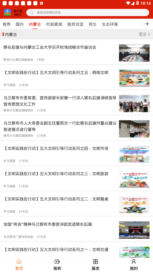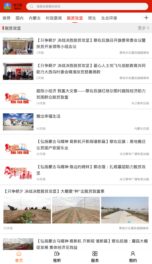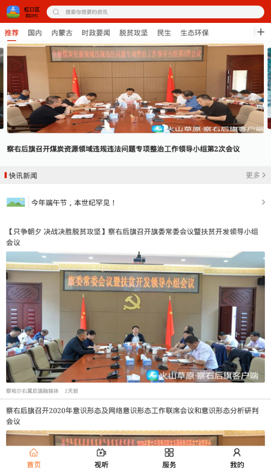 火山草原云app新闻+,主要分为新闻和服务两大功能服务。
