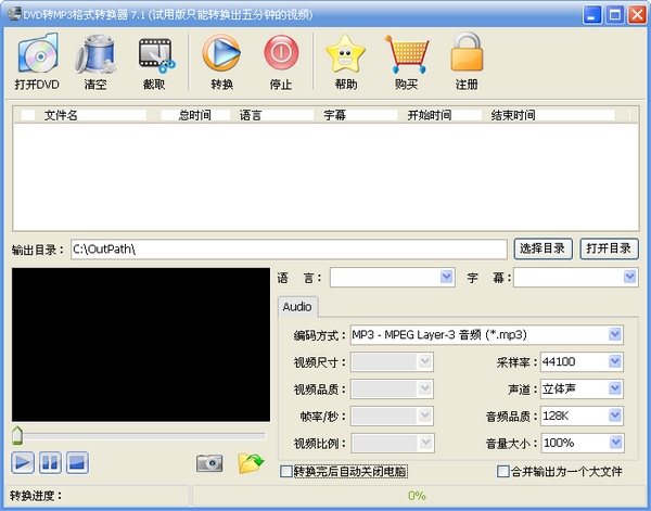 ◇ DVD转MP3格式转换器采用最先进的解码编码技术,转换速度快,兼容DVD光盘能力强