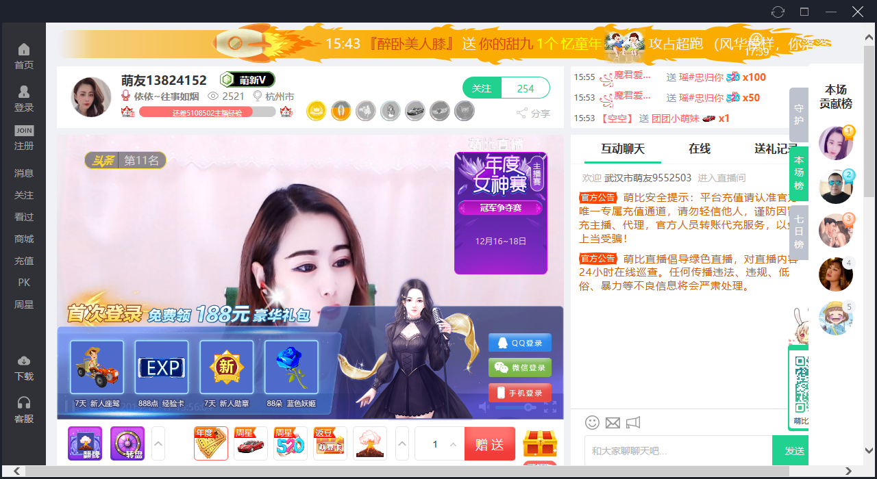 这里设计了丰富的酷炫礼物,有能力的人可以为喜欢的主播打CALL;