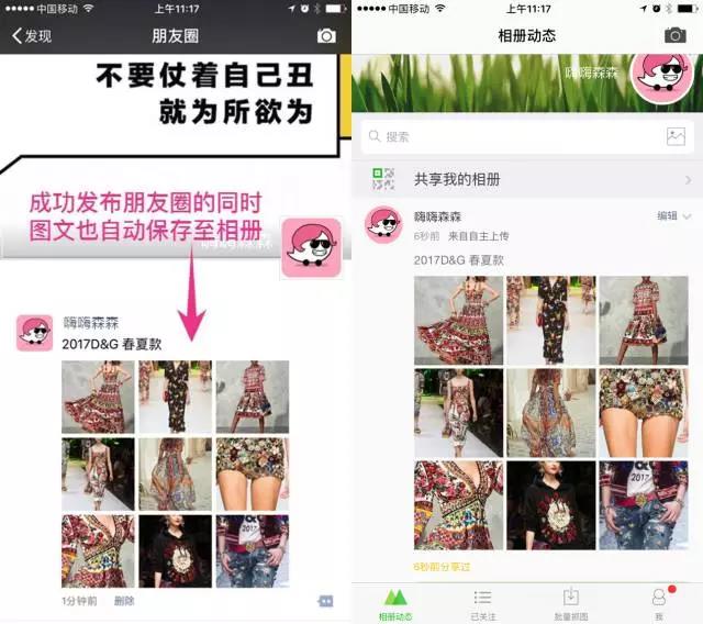 这样,您可以通过微商相册【批量抓图】功能,间接实现转发上家朋友圈至自己的朋友圈,并自动保存至微商相册。