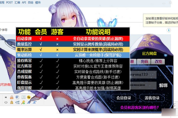 懒人助手从9月份一直稳定运行到现在.我是第一个发明自动拿牌以及装备识别功能的作者,好用没话说.现为了回馈广大支持作者的用户和粉丝们,开放游客免费模式(大部分实用功能都能用),并且只要是注册直接送7天VIP强大功能.