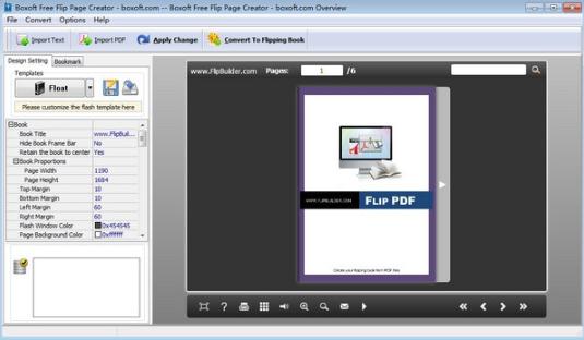 Boxoft Free Flip Page Creator是一款非常棒的电子书制作阅读软件工具。用户们可以使用这款软件可以文本文档到翻页书的高速转换,用于装饰的有用设计设置面板,轻松设计以及编辑具有翻页效果的电子书,喜欢的用户赶快来下载试试吧!