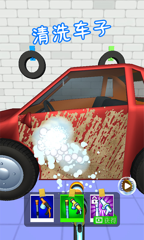 1、这款游戏采用了画风,游戏玩法非常简单。进入游戏后,玩家将通过操控一把水枪进行清洗任务,你需要洗干净或是其他物品身上的所有泥浆。