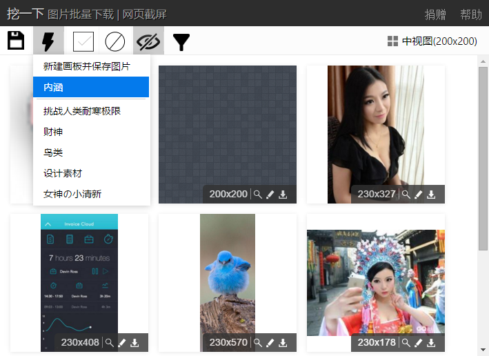 挖一下crx插件是一款基于Chrome的图片批量下载插件,这款挖一下插件可以根据用户用户需求快速准确地抓取网页上的图片(包括网页中css背景图片以及内嵌iframe的图片),根据您的需求对图片进行过滤和批量下载,并且支持整个网页的截屏。无论是工作还是娱乐,都可以有效地帮您节省更多的时间。