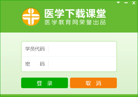 1、下载“医学下载课堂”软件,输入学员代码、密码,进行登录。