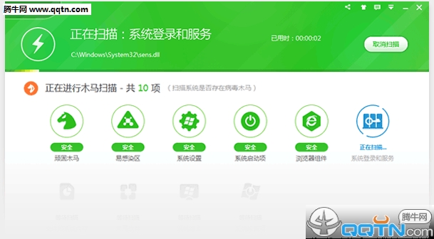 木马查杀功能可以找出您电脑中疑似木马的程序并在取得您允许的情况下删除这些程序。