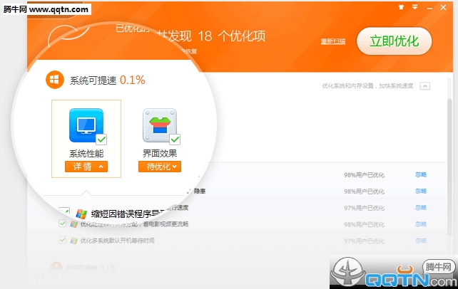 新一键优化,将之前版本的“一键优化”和“深度优化”整合在一起,
