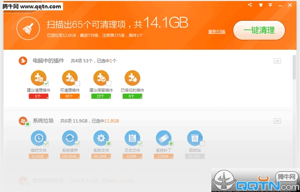电脑清理可帮您清理无用的垃圾、上网痕迹和各种插件等,让您的电脑更快更干净