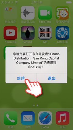 2.3 首次开启应用程式将会弹出询问视窗,点击继续即可进入游戏尽情耍乐
