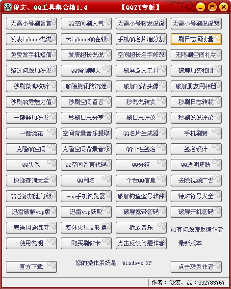 由俊宏制作的一款QQ集合工具,应该算是目前最为强大的功能最多的qq工具集合了吧,强烈推荐qq玩家们下载使用。