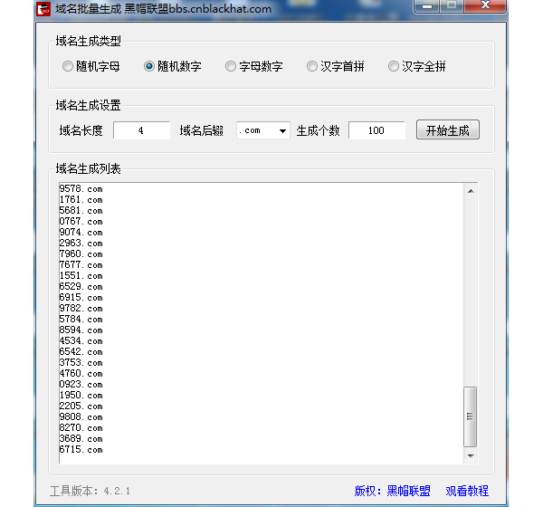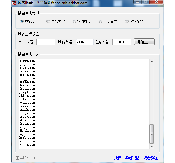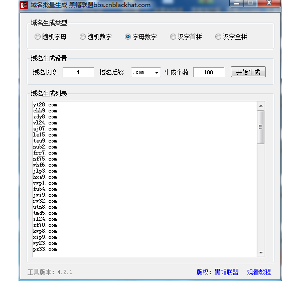 这是一款可以用来生成大量域名的小公举,支持的域名类型有com、、org、net,此工具最大的作用是帮助站长们发现和挑选喜欢的域名。