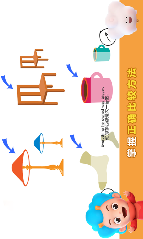 通过比较大小、长短等,帮助肖先生和达先生找到属于自己的物品。