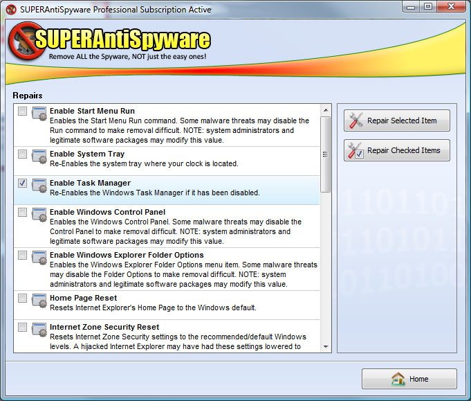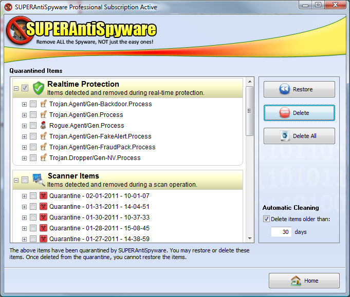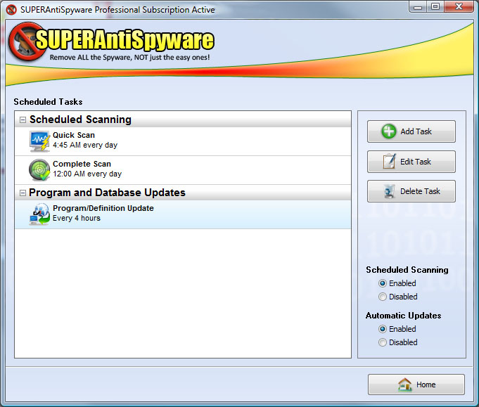 下面是一些位于产品主屏幕。superantispyware允许充分定制的扫描和清除过程中,以及在计划扫描定制。