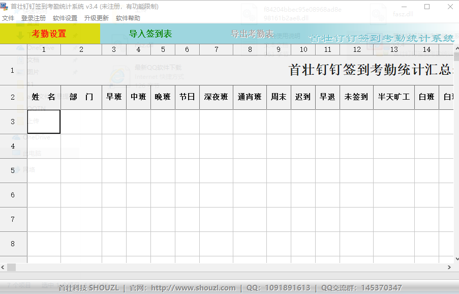 首壮签到考勤统计系统是一款专门针对钉钉考勤系统的软件,它能帮助用户提高统计考勤的效率,支持快速导入和导出考勤表,加快您的工作效率,支持一键还原设置,支持打印表格,自带考勤表格模板。感兴趣的朋友可以下载试试。