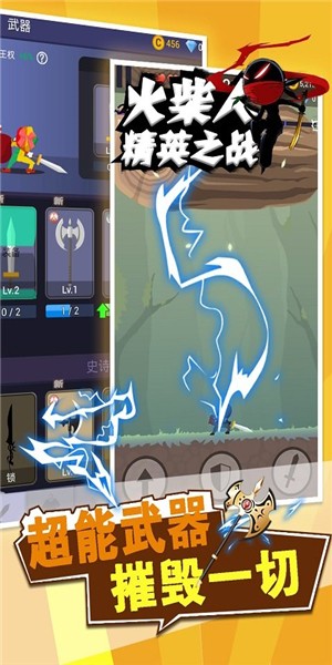 1、可以选择的火柴人有各种类型,造型各有特色,的技能和攻击武器都不一样