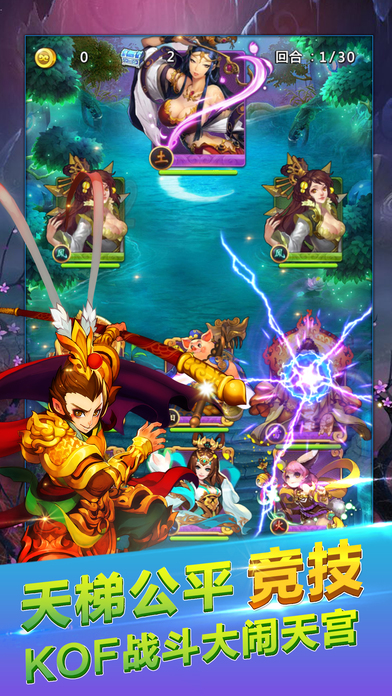 激爽大闹天宫玩法,全新车轮战KOF模式,每一个主角都有上场机会,一个都不能少;告别小打小闹,十万人同服决战天梯,与旗鼓相当的对手公平对战,体验竞技快感。
