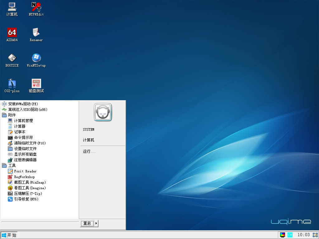 8.如果WinPE无法识别固态硬盘可试试开始菜单“安装NVMe驱动(PE)”(点击后自动运行无提示),如果新装系统出现“鼠标动不了”的情况可试试WinPE开始菜单“USB3驱动注入工具”;