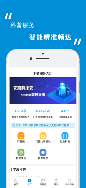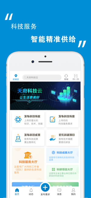 服务APP,四川科协推出的科技服务平台。企事业单位可以入驻发布需求,提高企业合作交流和商业收益,个人用户可以通过平台了解最新科技资讯,享受最贴心、最精准的科普知识。