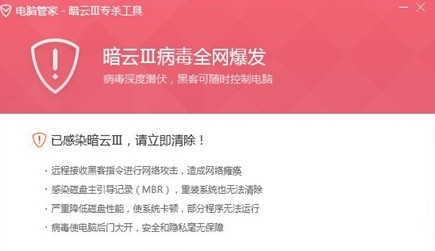 腾讯电脑管家暗云Ⅲ病毒专杀工具,一款腾讯公司专门研发出来的强大的软件,帮助你们有效的进行防护和查杀暗云Ⅲ病毒,修复病毒的文件,从而更好的保障电脑安全。
