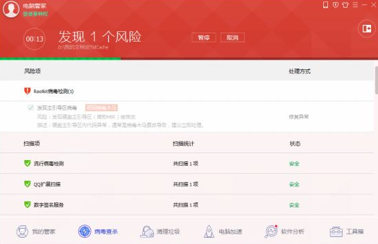 安装之后,直接进行查杀,就可以了解自己电脑风险情况