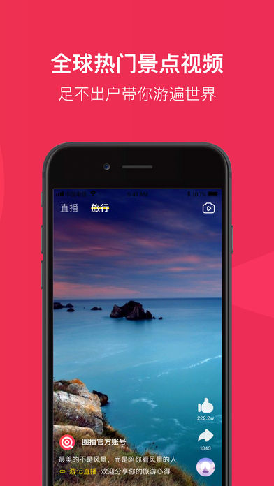 圈播iOS版,一款非常火爆的手机。平台内含2017多种火爆直播应用,各色最具人气的美女帅哥主播齐聚于此,为你带来一场场精彩绝伦的视听盛宴,让你随时看直播乐不停!