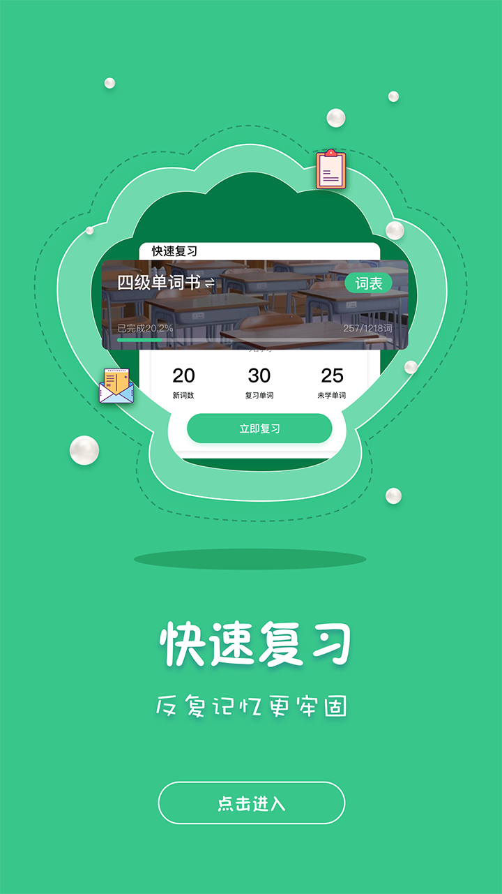 按学科分类并结合记忆曲线,充分利用碎片时间,短期高效提高你的词汇量。