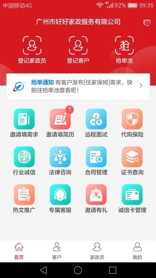 家政天下app,专为家政企业打造的移动服务平台,支持行业资源查询、合同管理、热文推广、简历填写等功能,解决家政企业的营销、管理问题。