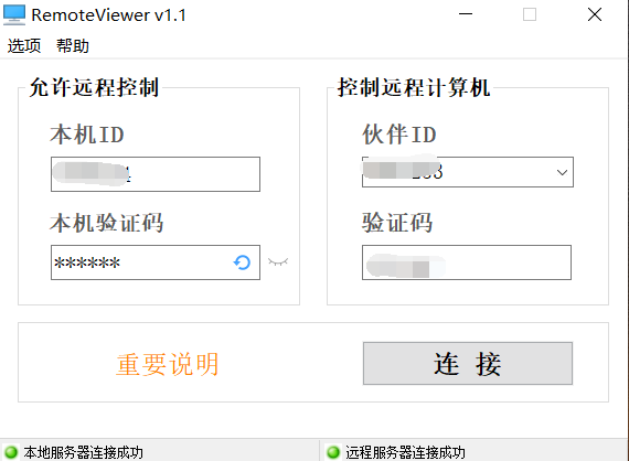RemoteViewer是一款电脑软件,一端两用,同时支持控制端和被控端,两台电脑分别输入IP和验证码开始连接,使用起来非常方便,有需要的用户不要错过了,欢迎下载使用!