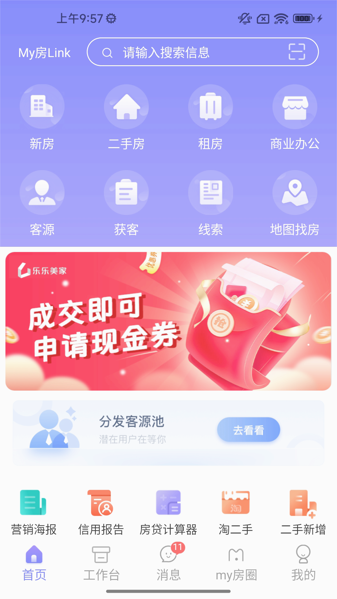 my房link app,房产中介以及的在线管理助手,支持房源查询、资源获取、信息查询、等功能,提高业务成交量,提高个人业绩。