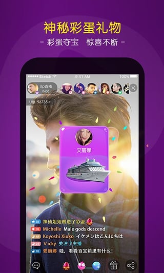 1.在线直播:观看劲歌热舞、聊天游戏互动、点歌送礼还能浪漫告白!
