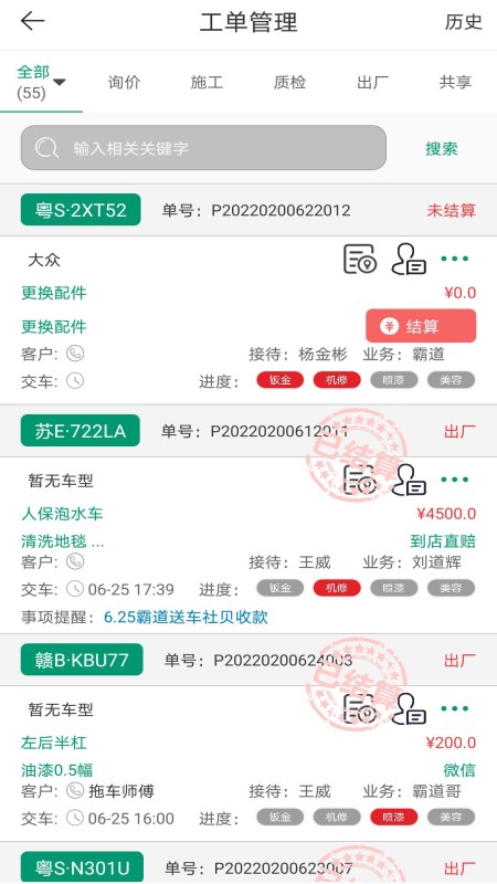 支持手机扫车牌开单,会员数据实时展示。出色的工单列表展示附单等功能让工单管理变得简单明了。