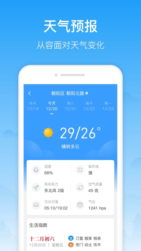 相雨预报app,专业精准的。相雨天气数据对接国家气象台,实时推送全国各地天气信息、支持24小时,15天天气精准查询,还有穿衣、紫外线、舒适度等生活指数推送,为健康出行保驾护航。