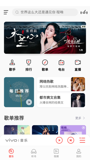 vivo音乐,听见世界听见你。海量音乐曲库,用心打造听觉盛宴,高品质HiFi专区精选众多好歌,全新发现页更多内容等您浏览。vivo音乐与您一起开启美妙音乐之旅!
