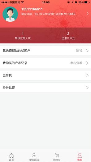 中行员工与普通用户都可以通过本APP与贫困户结对子,