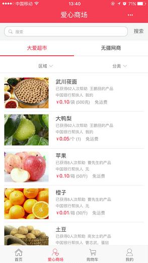 公益中行是一起善源旗下又一公益,公益中行专至于扶贫服务,该平台汇聚各地区贫困户,该软件会展示贫困户自家农副产品,有需要的可同过软件购买进行扶贫。