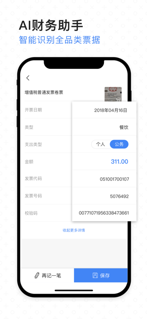 票小秘app可识别日期、金额、发票 代码、发票号码等重要票面信息。
