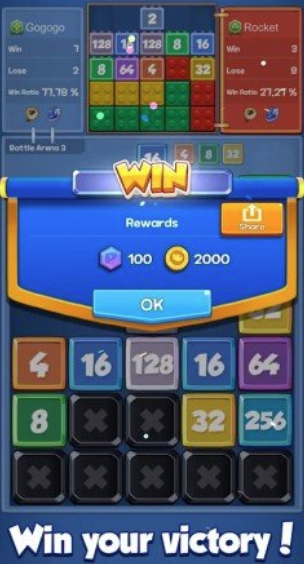 2、随机匹配对手,一起玩和消除,取得胜利的一方将会获得大量钻石和金币。