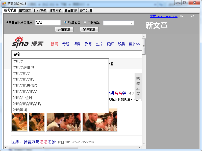 黑雨SEO是一款非常强大的seo工具,具有新闻采集、博客群发等功能,帮助seo工作者更好的工作,可以快速采集有用的文字资源!