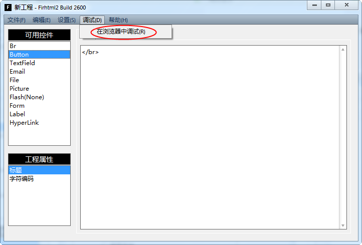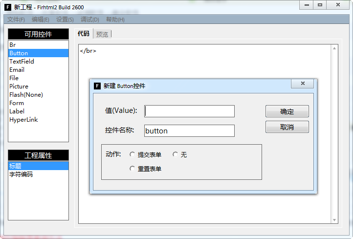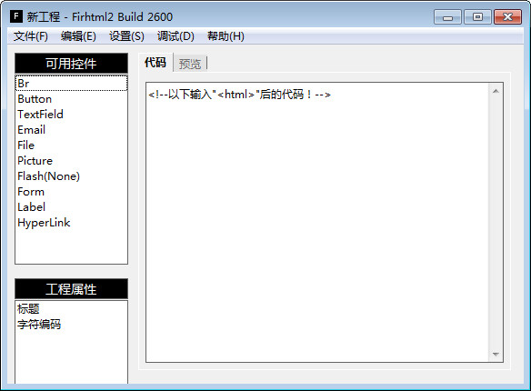 2、在软件主界面中输入html语句,左边为可用控件,双击即可添加