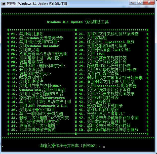 Windows 8.1 Update优化辅助工具是一款应用于Windows8.1Update之后,用来优化系统设置的批量处理工具,这个批量处理工具提供了多达50项优化操作,通过对升级的优化,能够提高Windows8.1系统运行性能,如果你的电脑系统刚刚升级为Windows8.1,那你就可以下载这款Windows8.1 update优化工具进行批量优化处理。