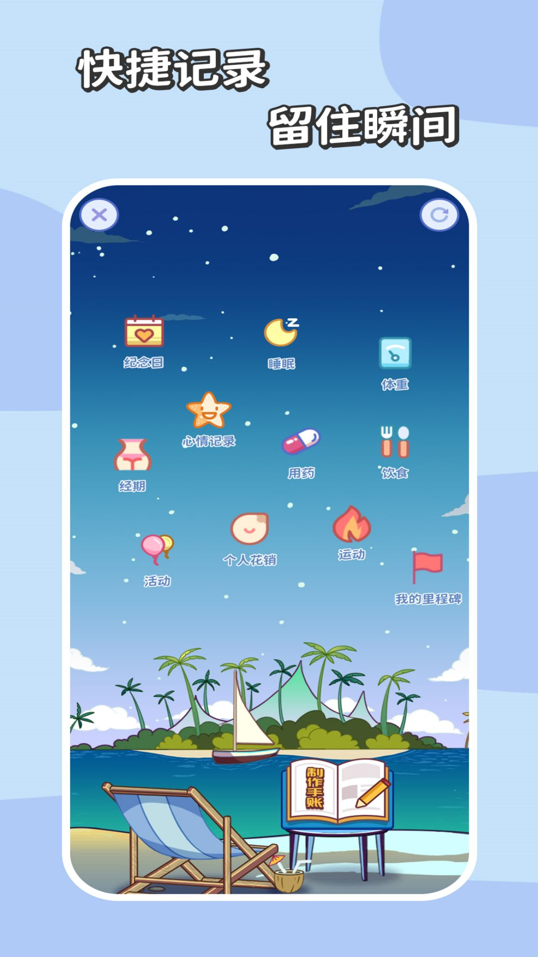 【更便捷的记录方式】多维度的记录项,满足各种日常记录的需求;详细记录或一键快捷记录,满足不同的记录方式;记录内容自动生成图表,让数据可视化,让回忆更直观!