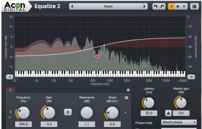 Acon Digital Equalize是一款参数均衡器插件,结合了独特的功能,出色的工作流程和直观的用户界面。与其他均衡器不同,您不仅可以自由调整中心频率,增益和带宽,还可以自由调整每个频段的滤波器斜率。滤波器斜率可设置为每个倍频程3 dB至超急剧120 dB的任何值。不用说,在使用最小相位模式或选择在线性相位模式下保持相位关系时,可以将Equalize作为零延迟插件运行。Equalize更进了一步,并引入了独特的混合相位模式,允许您在5到120毫秒的范围内自由设置延迟,同时尽可能保持相位关系。这给出了对潜在的预振铃伪像的独特控制,这是线性相位滤波的常见问题。低于20毫秒的延迟值确保任何预振铃被人类听觉的时间掩蔽所掩盖,同时保持可听频率范围内的时间对准。