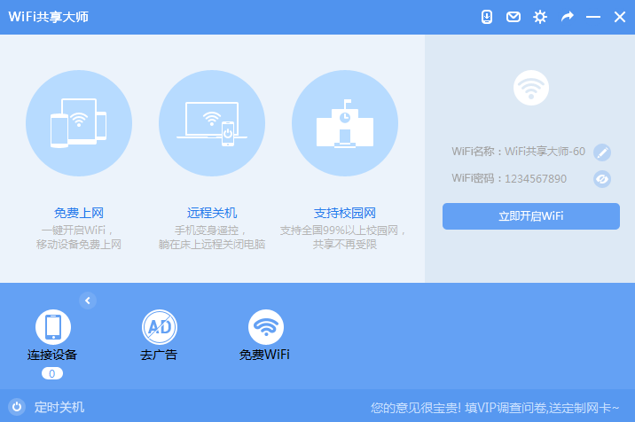 WIFI共享大师无需破解天翼客户端,直接安装运行,无需运行任何操作,,快捷。