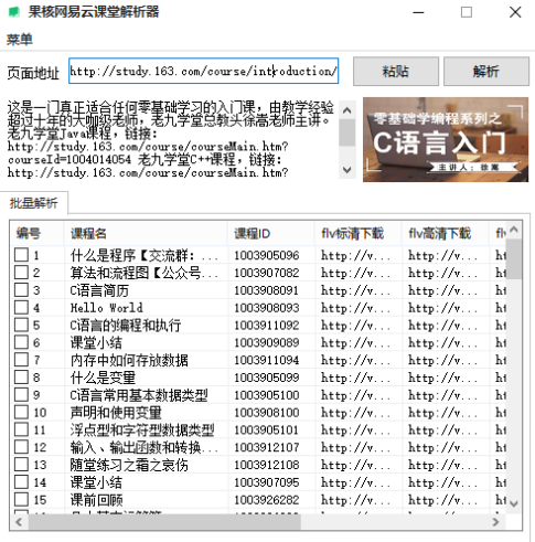 1.复制网易云课堂课程页面地址,然后粘贴进软件,点击解析