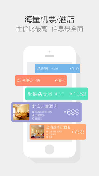 2、航空公司直销机票预订、超值头等舱,航班管家特惠酒店预订等特色服务。