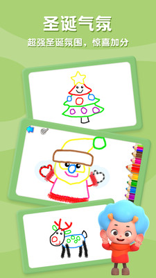 超温馨的圣诞氛围,跟着轮廓体验绘画六种可爱,以及十多种动画和声音,在趣味画图中培养色彩感知,开发艺术潜能,提升想象力和创造力。