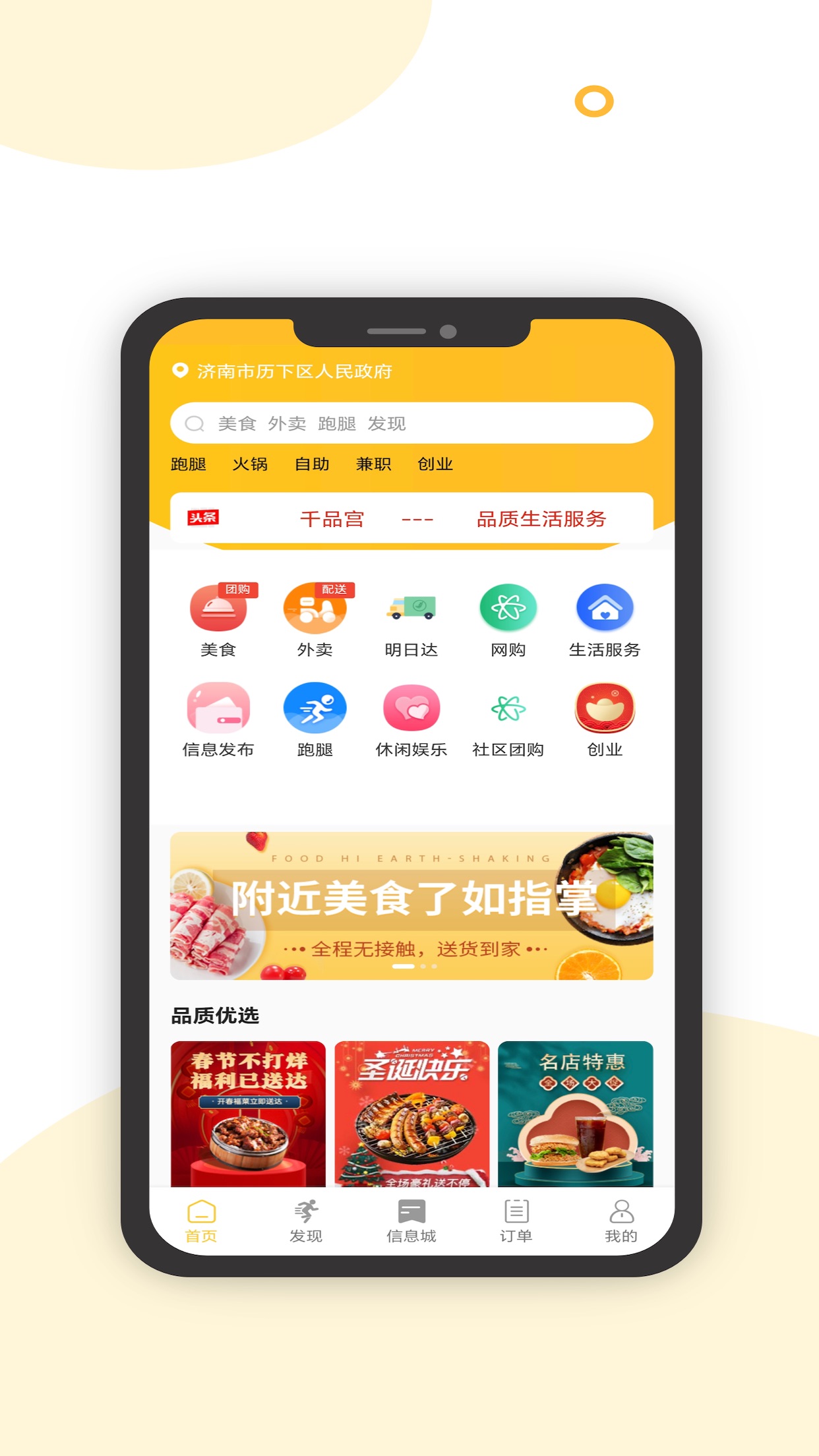 千品宫app,精准,一键查看附近外卖商家,提供便捷,在线挑选商品,轻松下单,享受更便捷的外卖配送服务,超多外卖等你选,在线点外卖。