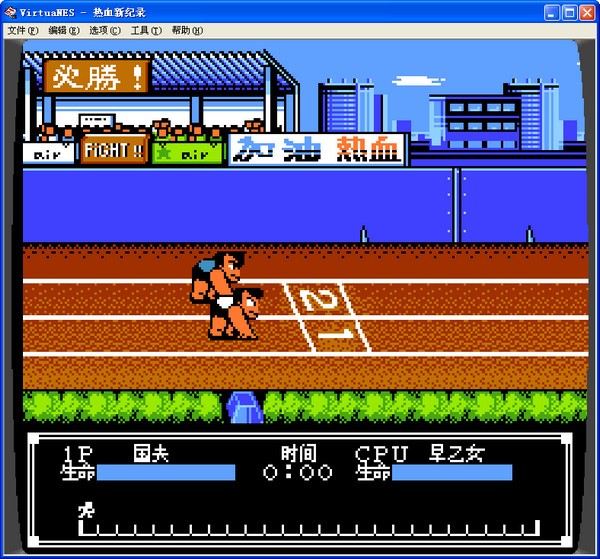 和现实中的跨栏差不多,不过是允许对对方进行攻击就是了。比赛过程中可以用旋风腿和栏板攻击对方;率先冲线或将对方打倒在跑道上即可获胜。