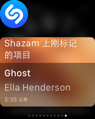 瞬间完成 Shazam。在 Apple Watch 上启动 Shazam 即可随同音乐显示歌手、歌曲和歌词。